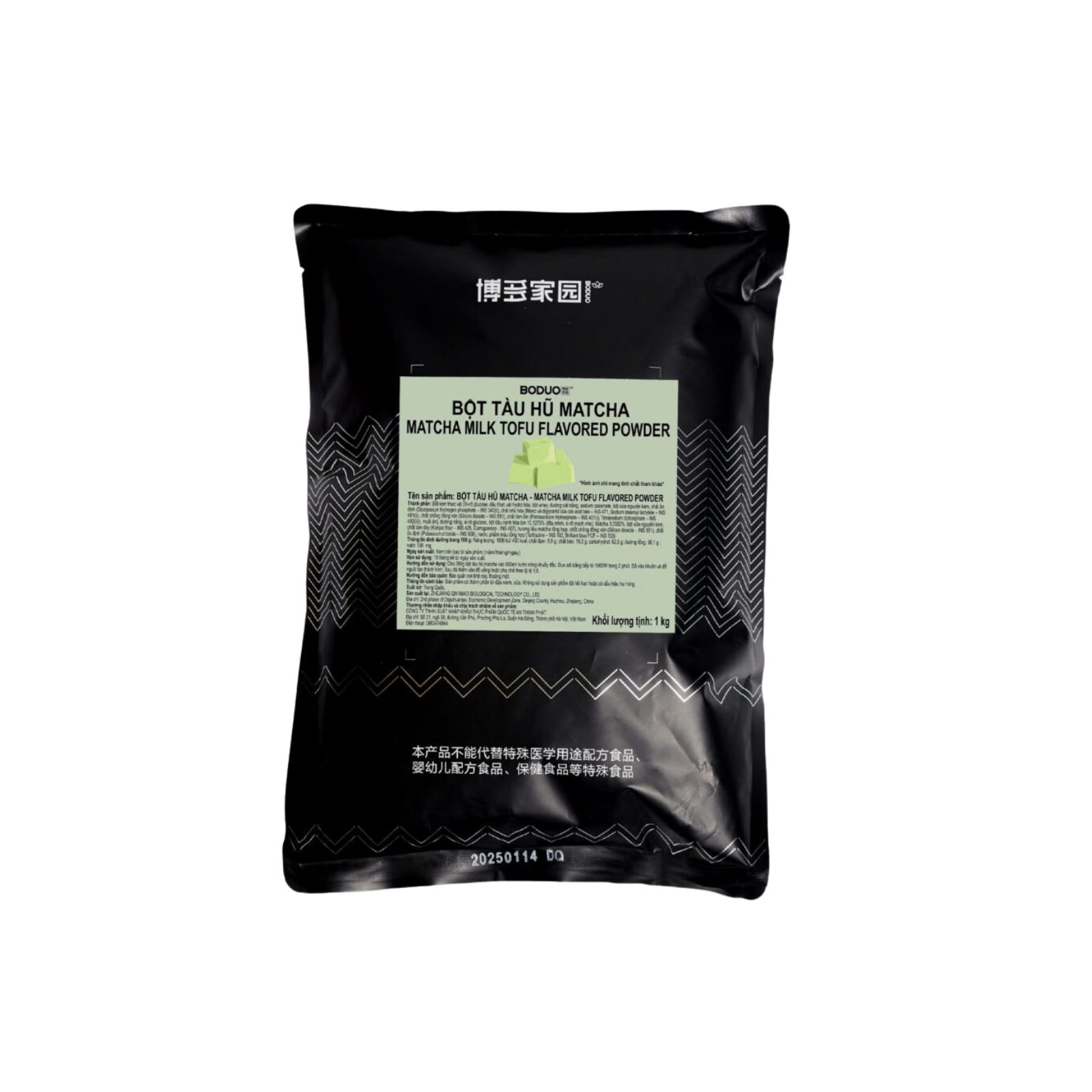 Bột Tàu Hũ Matcha Boduo 1kg là loại bột pha chế chuyên dụng để làm tào phớ (tàu hũ) vị matcha với hương trà xanh đậm đà, vị thanh nhẹ và màu xanh tự nhiên đẹp mắt. Sản phẩm thích hợp sử dụng trong pha chế đồ uống, món tráng miệng và các món dessert Hàn – Nhật, giúp tạo lớp tàu hũ mềm mịn, dẻo ngon và giữ hương matcha đặc trưng.