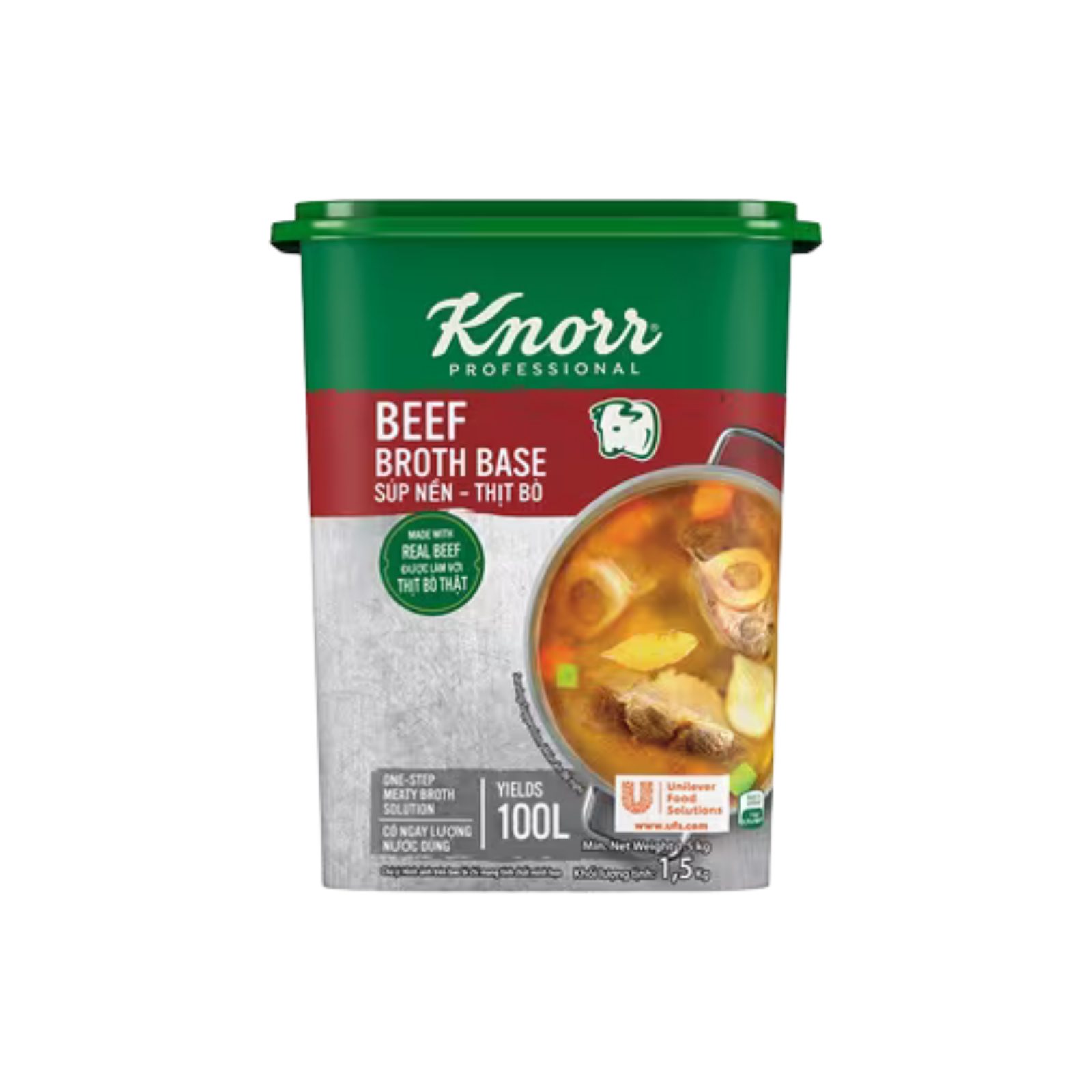 Cốt nền cô đặc bò Knorr 1.5kg là bước đột phá trong công nghệ gia vị chuyên dụng, được đặc chế từ nước hầm xương và thịt bò ninh lâu đời. Với kết cấu dạng xốt sệt đậm đặc, sản phẩm mang lại hương vị bò nồng nàn, hậu vị ngọt sâu và màu sắc nâu bóng tự nhiên mà không tốn nhiều giờ ninh nấu thủ công.