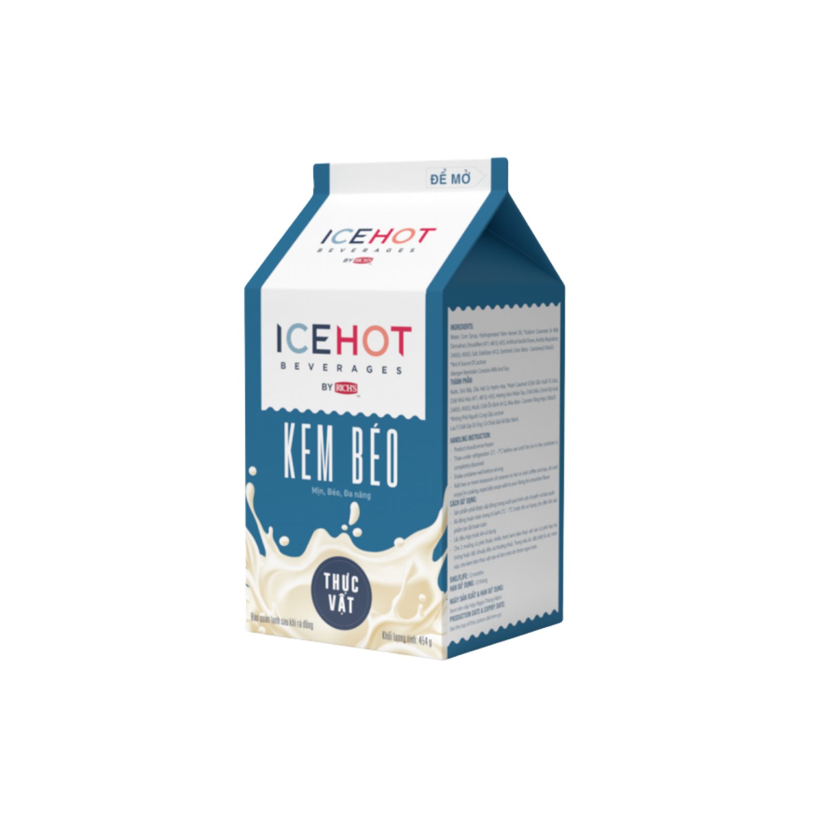 Kem Ice Hot Lùn 454g (Mẫu Mới) là sản phẩm kem thực vật cô đặc chuyên dùng trong pha chế đồ uống và làm bánh, giúp tạo độ béo mịn, hương vị ổn định và kết cấu sánh mượt cho thành phẩm. Với bao bì mẫu mới dạng lùn 454g, sản phẩm tiện lợi cho quán cà phê – trà sữa và sử dụng tại nhà.