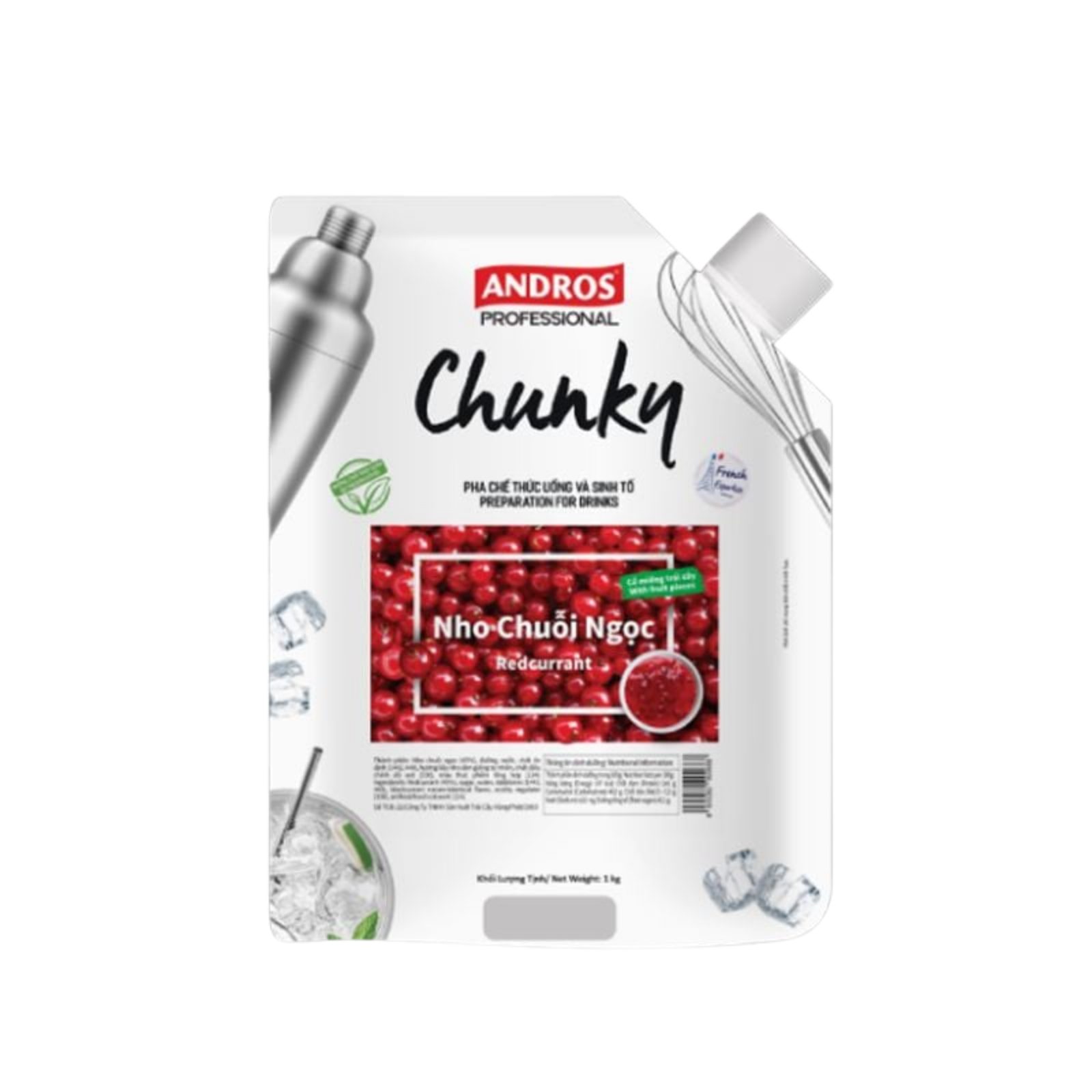 Mứt Chunky Nho Chuỗi Ngọc 1kg (Red Currant) là dòng mứt trái cây cao cấp với thành phần trái cây thật lên đến hơn 45%. Sản phẩm gây ấn tượng mạnh bởi những quả nho chuỗi ngọc căng mọng, giữ nguyên hình dáng, mang lại vị chua thanh sảng khoái và sắc đỏ rực rỡ, giúp nâng tầm đẳng cấp cho các dòng đồ uống hiện đại.