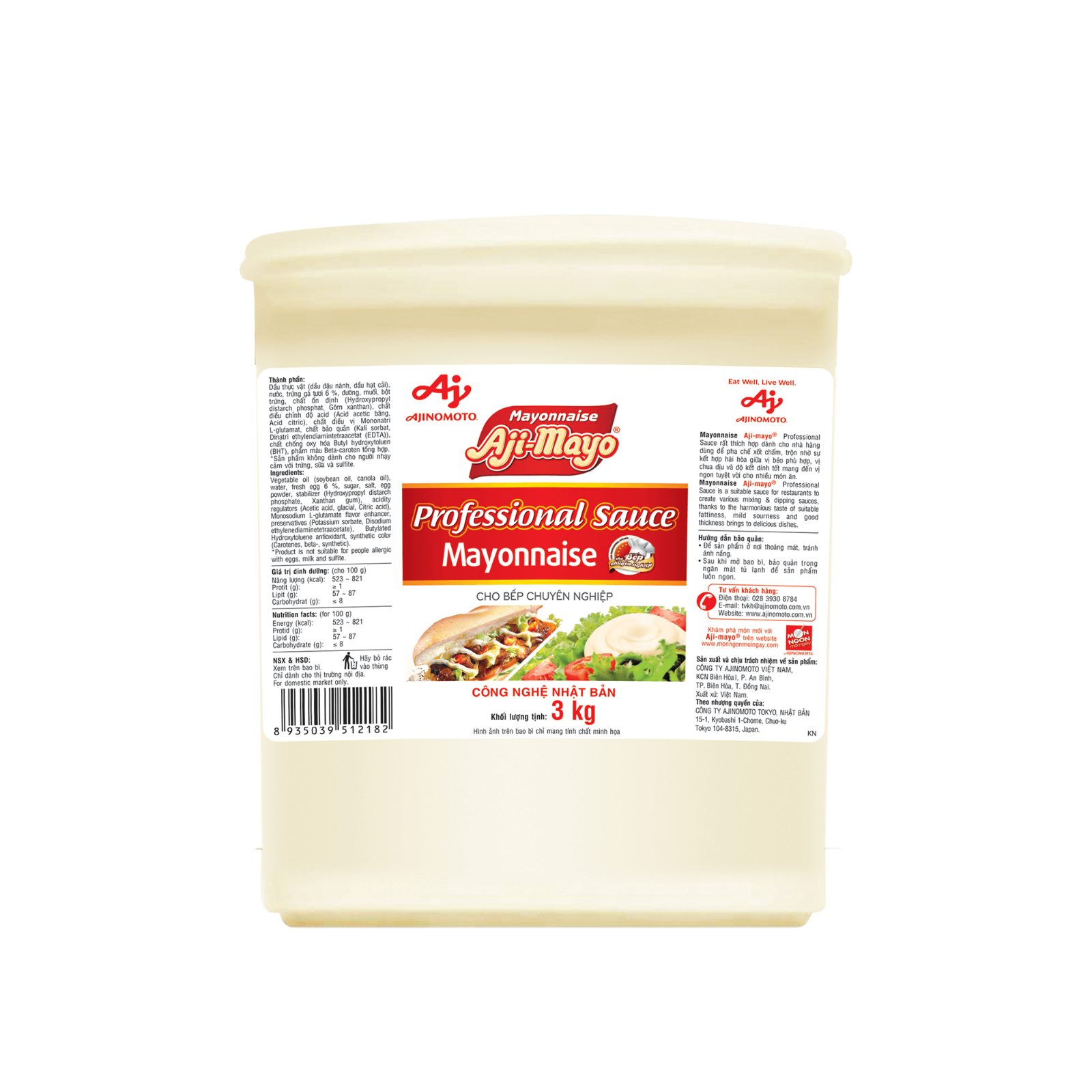 Xốt Ajinomoto mayonnaise 3kg là dòng xốt gia vị đậm đặc với thành phần trứng gà tươi và dầu đậu nành chất lượng cao, giúp mang lại hương vị béo thơm đặc trưng và độ mịn màng hoàn hảo cho các món ăn.